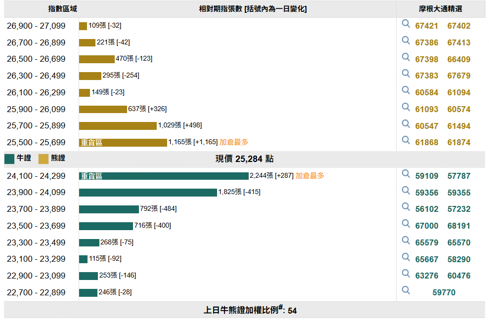 恒指上日曾重上25000點水平,輪場資金或反映投資者傾向反手造淡,恒指牛恒指摩通八九牛V.C /熊恒指摩通八十熊1.P