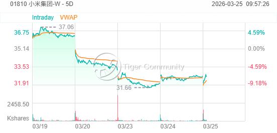 小米季度營收增速創2023年以來最低,股價今早低開近2%,小米購小米摩通六七购A.C /沽 小米摩通六八沽A.P