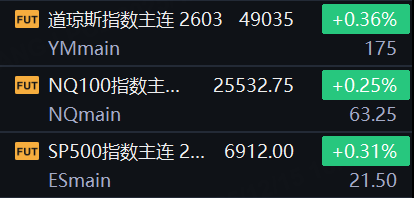 12月15日,美股三大股指期货小幅上涨,截止发稿,道指期货涨0.36%,纳指期货涨0.25%,标普500指数期货涨0.31%。