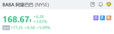 阿里巴巴盘前涨超5%,彭博报道称其计划为AI芯片制造部门平头哥半导体进行IPO;
