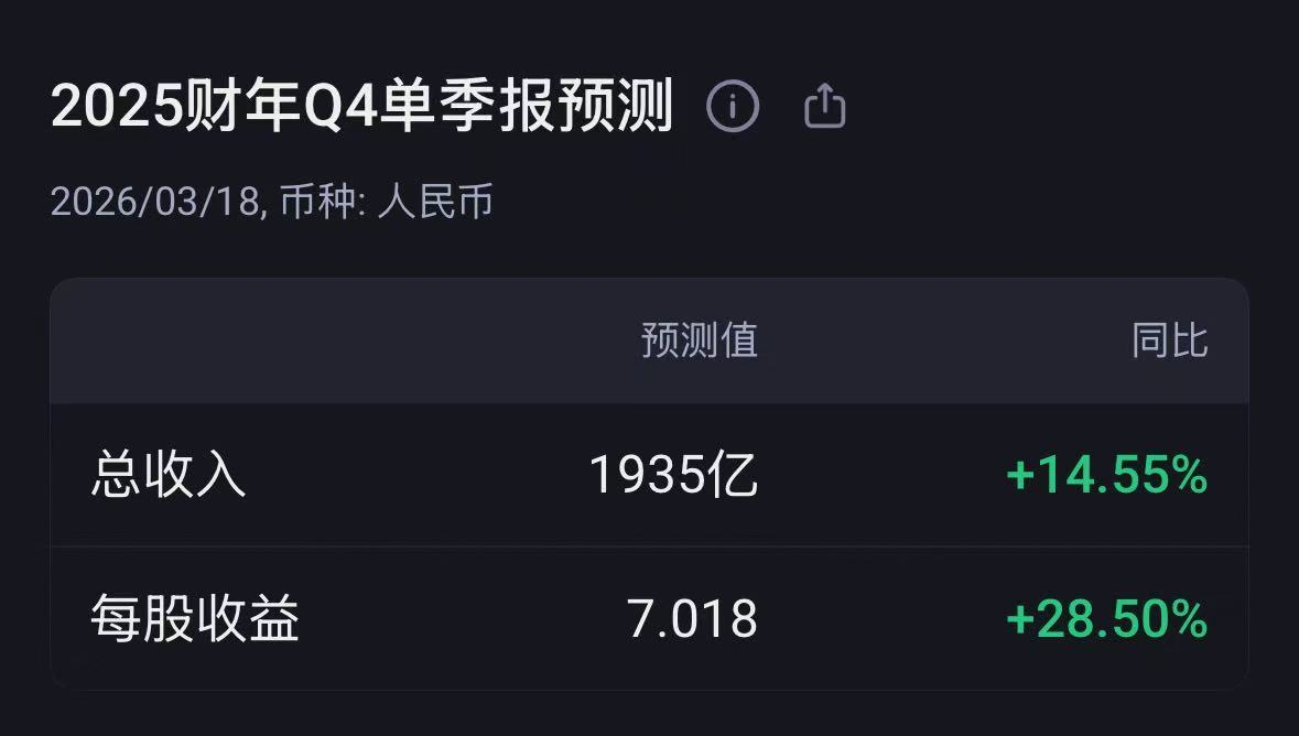 根据老虎国际APP数据来源预测,腾讯控股2025年第四季度营收有望达到1935亿元人民币,同比增长14.55%;每股收益(EPS)预计为7.02元,同比增幅达28.5%。