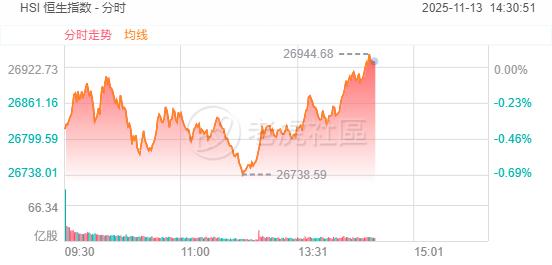 11月13日,港股午后走高,恒指转涨,恒生科技指数跌幅收窄至0.2%;创新药概念走高,三生制药涨超10%,中国生物制药、百济神州涨超7%,先声药业、信达生物涨超6%。