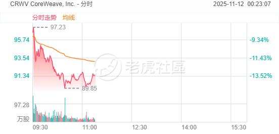 11月11日周二,人工智能基础设施供应商 CoreWeave, Inc. 盘中大跌超13%。该公司周一盘后公布的三季度财报虽超预期,但下调全年营收指引引发投资者对其增长前景的担忧。