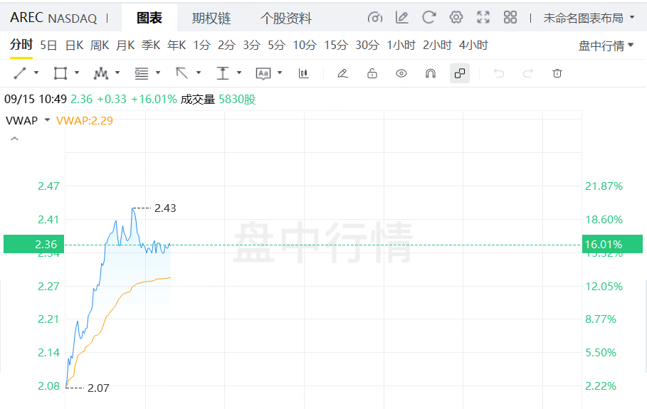 9月15日,美股稀土概念股盘中冲高,American Resources涨超16%,MP Materials涨超5%,Energy Fuels、USA Rare Earth涨超3%。