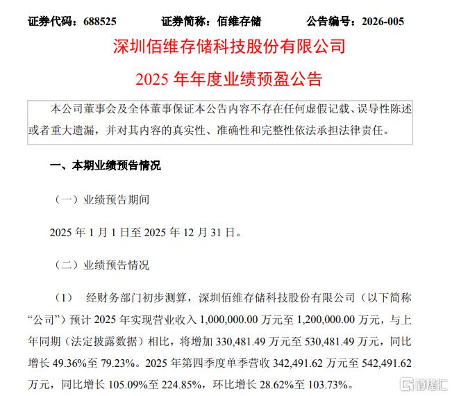 1月13日,存储芯片厂商佰维存储披露2025年年度业绩预盈公告,以亮眼的全年业绩数据印证了行业周期上行的红利。