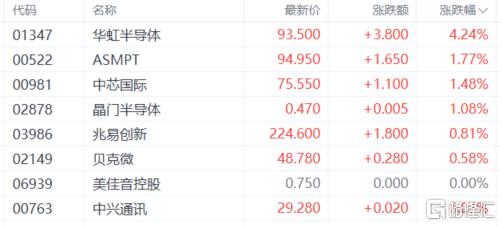 港股市场上,芯片股表现活跃。截至发稿,华虹半导体、中芯国际、晶门半导体、兆易创新、贝克微、中兴通讯等多股上涨。