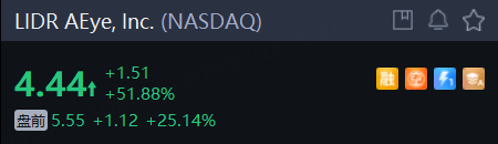 周一,激光雷达公司 AEye, Inc. 盘前再涨超25%,该股上周涨近300%,其旗舰产品Apollo激光雷达被英伟达集成到DRIVE AGX平台。
