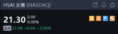 中概激光雷达开发企业 禾赛 盘前涨3%。