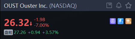 同时,激光雷达概念股盘中走高, Aeva Technologies Inc. 涨超5%, Ouster Inc. 涨3.5%。