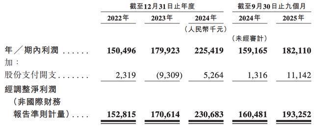 按非国际财务报告准则计量,兆威机电2022年、2023年、2024年度的经调整净利润分别约为1.53亿元、1.71亿元、2.31亿元。2025年前三季度,兆威机电的经调整净利润约为1.93亿元,2024年同期约为1.60亿元。