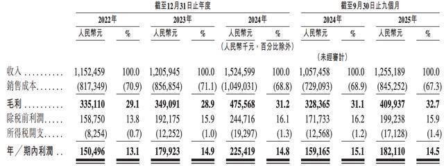 2022年、2023年、2024年度和2025年前九个月(前三季度),兆威机电的营收分别约为人民币11.52亿元、12.06亿元、15.25亿元和12.55亿元,净利润分别约为 1.50亿元、1.80亿元、2.25亿元和1.82亿元。