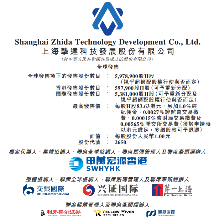 9月30日,挚达科技于9月30日-10月6日招股,拟全球发售597.89万股H股,香港公开发售占约10%,国际发售占约90%,另有约15%超额配股权。发售价将为每股发售股份66.92-83.63港元,每手50股,预期将于10月10日开始在联交所买卖。