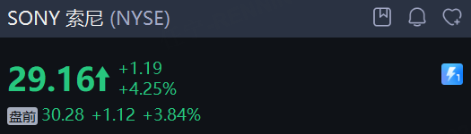 索尼涨近4%。将推出新款低价版PS5游戏机;此外,该公司最新季度业绩超市场预期,并上调全年利润指引。