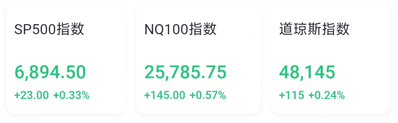 同时,芯片股普涨,美光涨超2%,英伟达、ARM涨超1%,台积电涨0.95%,英特尔涨约0.7%。