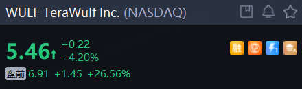 数字基础设施公司 TeraWulf Inc. 盘前拉升,一度暴涨30%,截至发稿涨幅超26%。公司二季度每股亏损0.05美元,小于分析师预期;二季度销售额为4763.6万美元,比分析师普遍预期的4607.7万美元高出3.38%,比去年同期增长了33.91%。