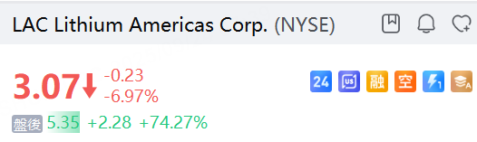 Lithium Americas股价在盘后交易中上涨74%,至5.35美元。在收盘后股价飙升之前,该股今年内上涨了约3%,过去52周上涨了25%。