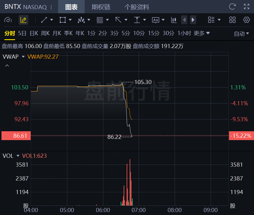 3月10日,BioNTech SE美股盘前暴跌逾15%!2025年第四季度营收9.07亿欧元,市场预期7.94亿欧元,去年同期11.9亿欧元;净亏损3.05亿欧元,市场预期净亏损0.47亿欧元,去年同期净利润2.6亿欧元;每股亏损1.25欧元,市场预期每股亏损0.4欧元,去年同期每股收益1.1欧元;预计2026年总收入为20亿至23亿欧元,不及市场预期。