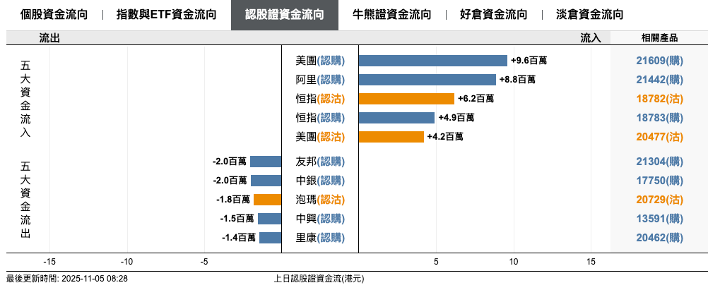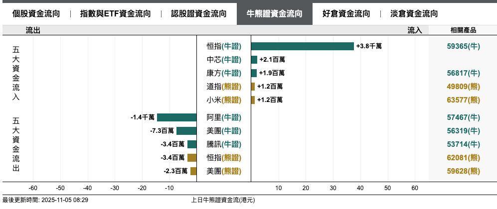 2、恒指牛熊證資金流