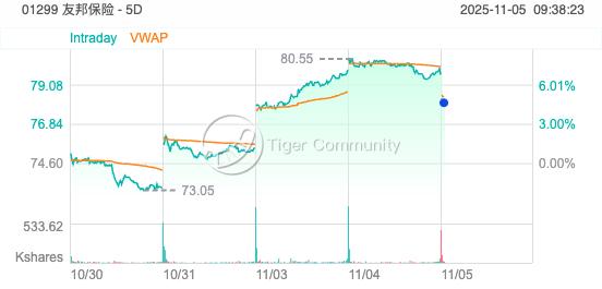 友邦上日曾突破80元 創逾兩年新高 市場憧憬新業務價值和內地業務加速增長 友邦購 友邦摩通六二购A.C /沽 友邦摩通六乙沽A.P 。