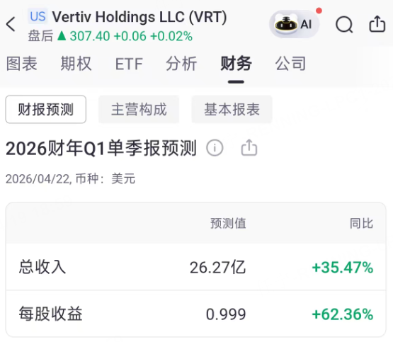 Vertiv Holdings LLC 将于4月22日美股盘前发布一季度财报,市场关注AI数据中心动能延续与订单转化节奏。