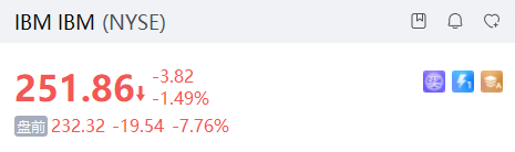 IBM盘前跌超7%,Q1营收利润双超预期,软件增速失色,市场担忧AI冲击传统业务
