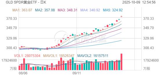 期权方面,SPDR黄金ETF当日期权成交187.56万张,较90日均量放大逾4倍,看涨期权占比75.1%,其中于10月24日到期的380美元行使价的看涨期权成交居前,成交超20万张; $GLD 20251024 380.0 CALL$