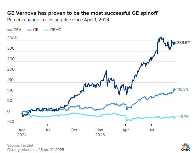 当时,投资者才刚刚开始理解AI对能源消耗的影响。但正如Vernova的表现所显示的那样,斯特拉齐克的观点如今可能已被更广泛地接受。该股自2024年4月2日开始交易以来,股价已上涨超过三倍(即翻了四倍多)。自从GE分拆出来后的这一年半里,它是标普500指数中表现第二好的股票,仅次于风光无限的Palantir。