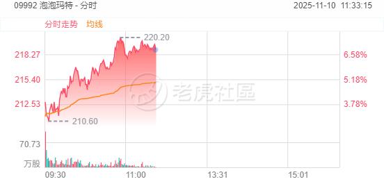港股新消费概念股亦出现普涨,沪上阿姨一度涨超10%,泡泡玛特一度涨超7%,巨子生物涨超5%,奈雪的茶涨超4.4%,毛戈平亦大涨超4%,达势股份、布鲁可、古茗等集体爆发。