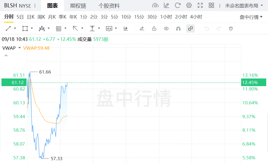 9月18日,加密货币概念股盘中走高,Bullish涨超12%,Figure、CleanSpark涨超11%,BMNR涨超8%,Circle涨近7%,Strategy涨超6%,Coinbase涨超5%。