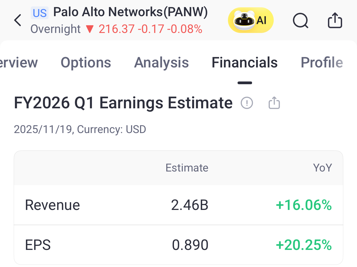 Palo Alto Networks(PANW)将于2025年11月19日(美股盘后)发布最新季度财报,市场关注营收与盈利能否延续双位数增长态势及利润率趋势变化。