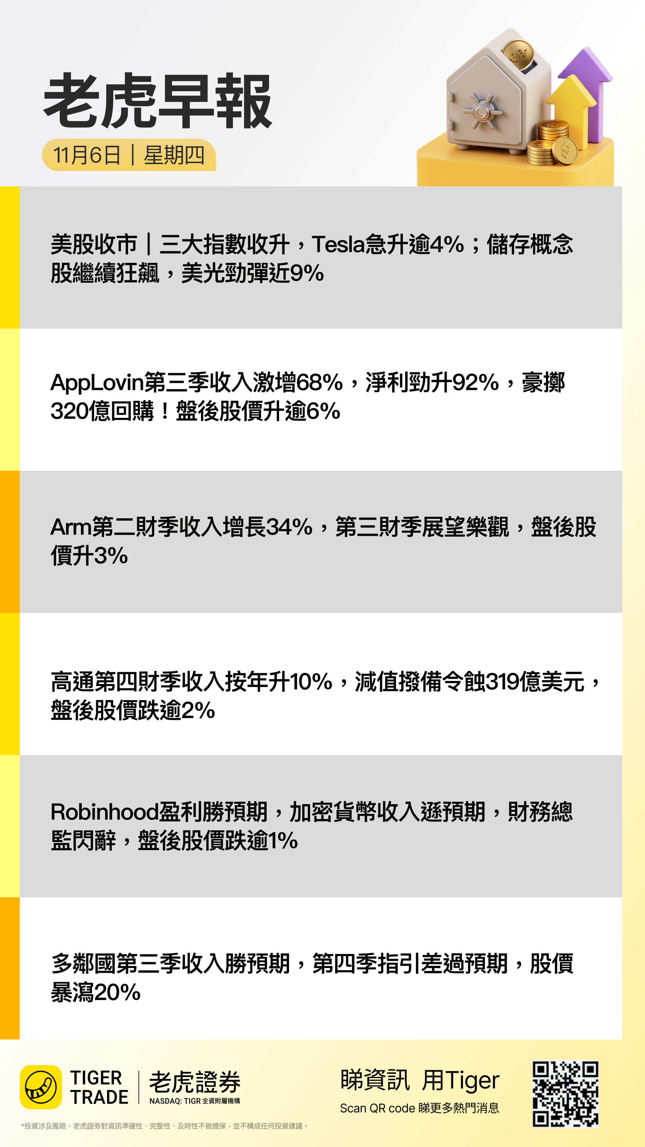 业绩:港股华虹半导体发布业绩;美股阿斯利康、D-Wave Quantum、加拿大鹅、安德玛、Vistra Energy(盘前),爱彼迎、Affirm、MP Materials、Opendoor、SoundHound AI、IREN、SanDiskPeloton(盘后)发布业绩。