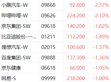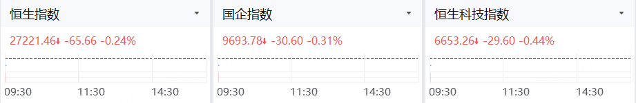 港股三大指数小幅低开,恒指跌0.24%,恒生科技指数跌0.44%。