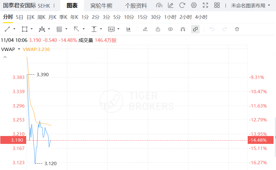 11月4日,港股稳定币概念股大跌,国泰君安国际跌超14%,华检医疗跌超12%,云锋金融、狮腾控股跌超5%,耀才证券金融跌超3%。