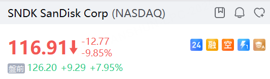 美股存储概念股盘前大涨, SanDisk Corp 涨超7%,美光科技 、 希捷科技 、 西部数据 涨超4%。