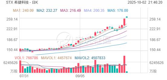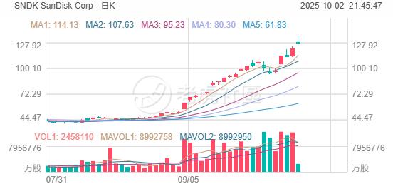 周四,存储概念股延续强势,纷纷刷新历史纪录。SanDisk Corp 盘初大涨近9%, 西部数据 涨超4%, 希捷科技 涨超2%。