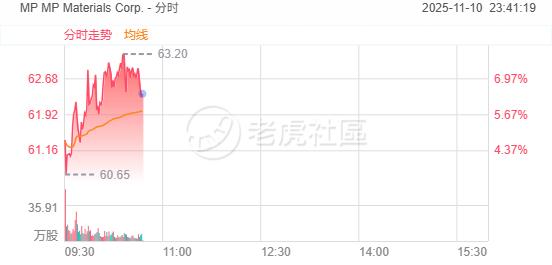周一,部分矿产股再度活跃, MP Materials Corp. 、 Energy Fuels Inc 、 CRITICAL METALS CORPORATION 盘中均涨超7%。