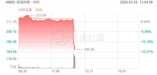 泡泡玛特午后直线跳水大跌14%。