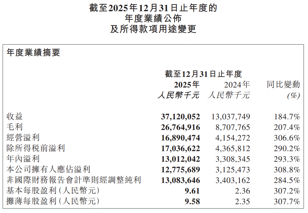 泡泡玛特 :2025年度收益371.2亿元人民币,同比增长184.7%;年度拥有人应占溢利127.75亿元,同比增长308.8%。