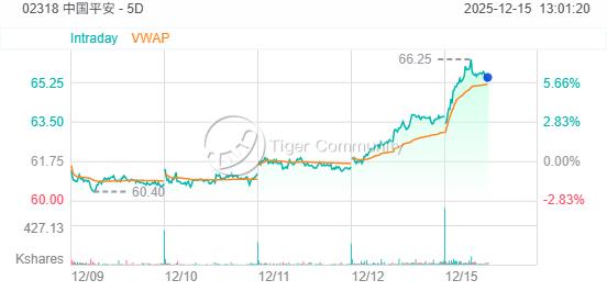 中国平安半日涨超2%,$平安 251230 65.00 CALL$ 成交6937张合约,$平安 251230 67.50 CALL$ 成交2869张合约
