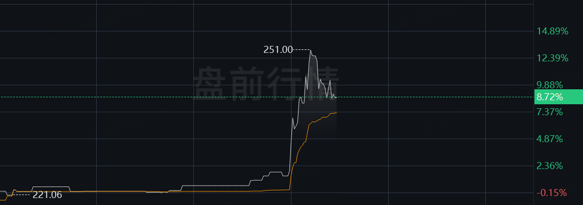 Ciena科技盘前直线拉升,一度涨超12%,截至发稿涨幅近9%。