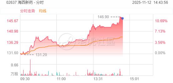 11月12日,海西新药涨超10%,再创上市新高,较招股价86.4港元累涨近70%!