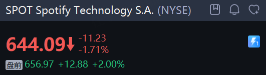 Spotify预计第四季度月活跃用户达7.45亿,市场预期为7.4031亿;预计第四季度毛利率为32.9%,市场预期为32.5%。