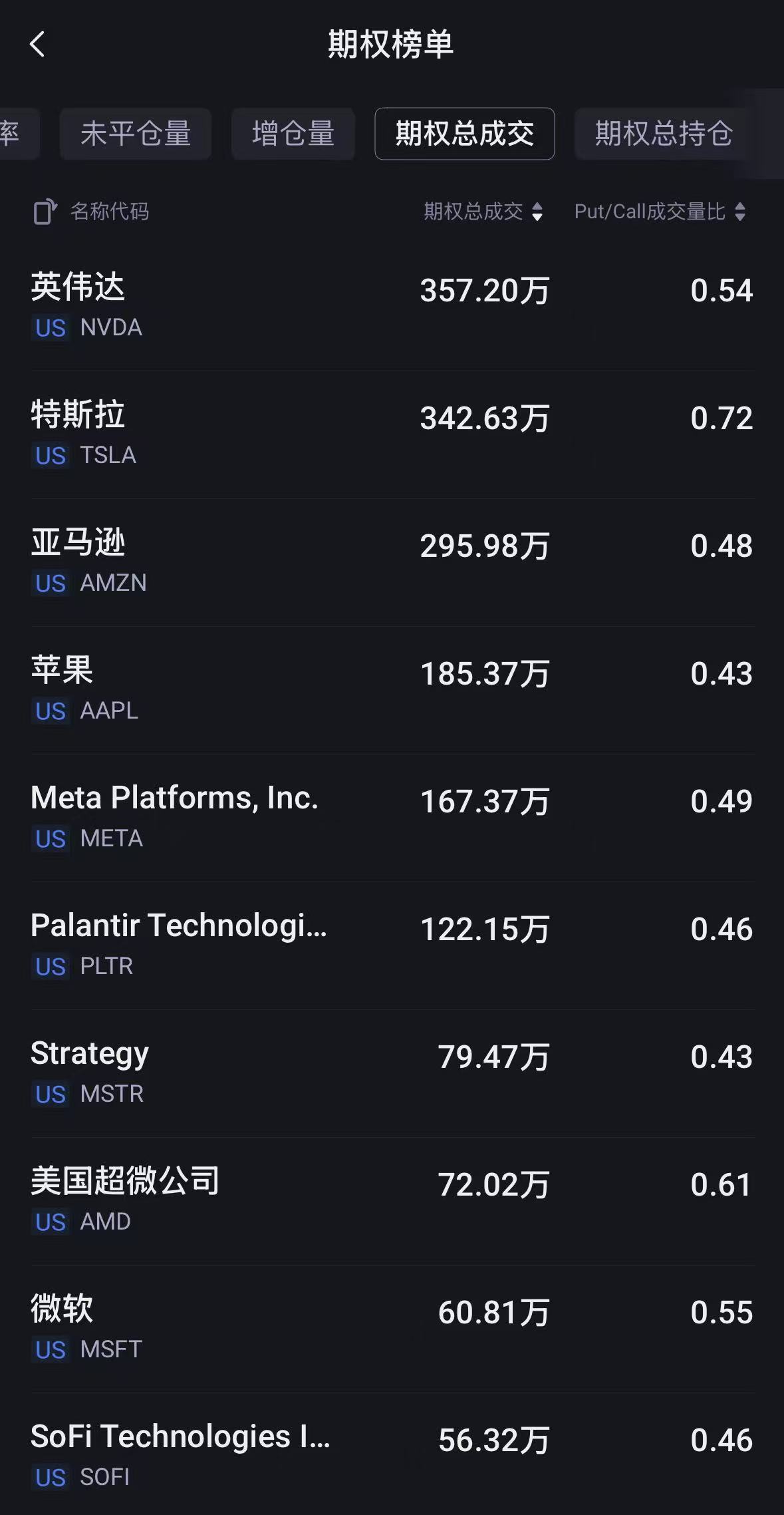 上周五,期权市场总成交量6767.17万张合约,高于90日均量;亚马逊当日期权成交超295.98万张,较90日均量放大逾4倍;Palantir当日期权成交超122.15万张,看涨期权占比升至68.4%>>