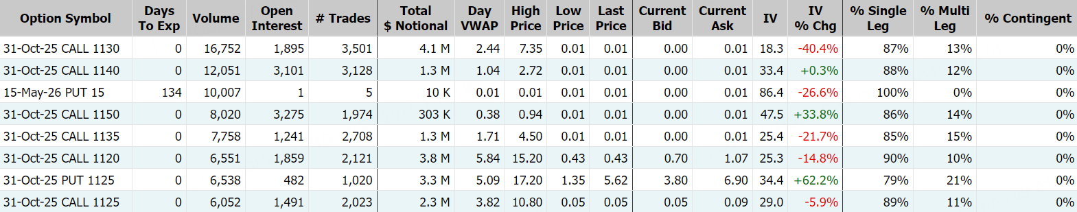 期权方面,奈飞当日期权成交超32万张,较90日均量放大逾2倍,看涨期权占比升至63.7%,其中于10月31日到期的1130美元行使价的看涨期权成交居前,成交近1.7万张。