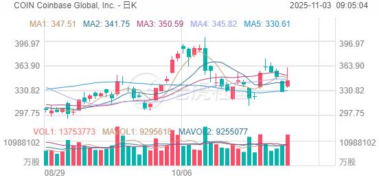 Coinbase绩后收涨逾4%!消息面上,该公司第三季度交易量达到2950亿美元,这一强劲势头延续到了第四季度。净利润从去年同期的7550万美元飙升近五倍,达到4.33亿美元。公司计划在12月17日的产品展示会上,分享其在股票代币化和预测市场方面的更多细节。