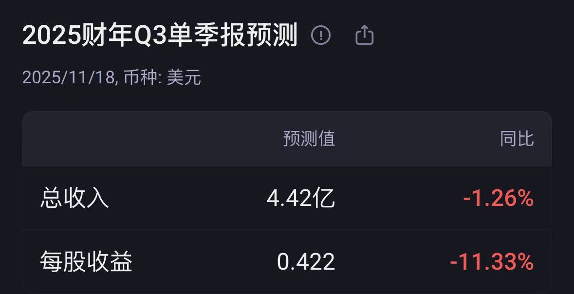 微博将于11月18日(美股盘前)发布其2025年第三季度财报。根据老虎国际APP数据预测,微博Q3总收入约为4.42亿美元,同比下降1.26%。每股收益预计为0.42美元,同比下降11.33%。