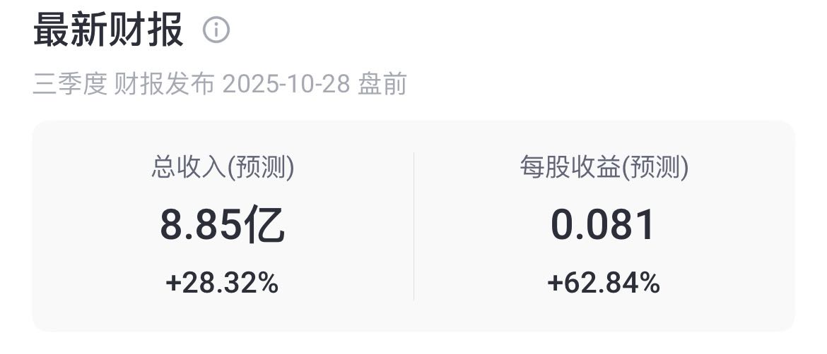 根据Tiger Trade APP数据来源预测,公司第三季度的营收预计为8.85亿美元,同比增长28.32%;调整后每股收益预计为0.081美元,同比增长62.84%。