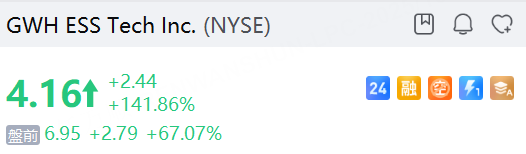 ESS Tech盘前飙逾60%!该股上周五大涨141.86%。