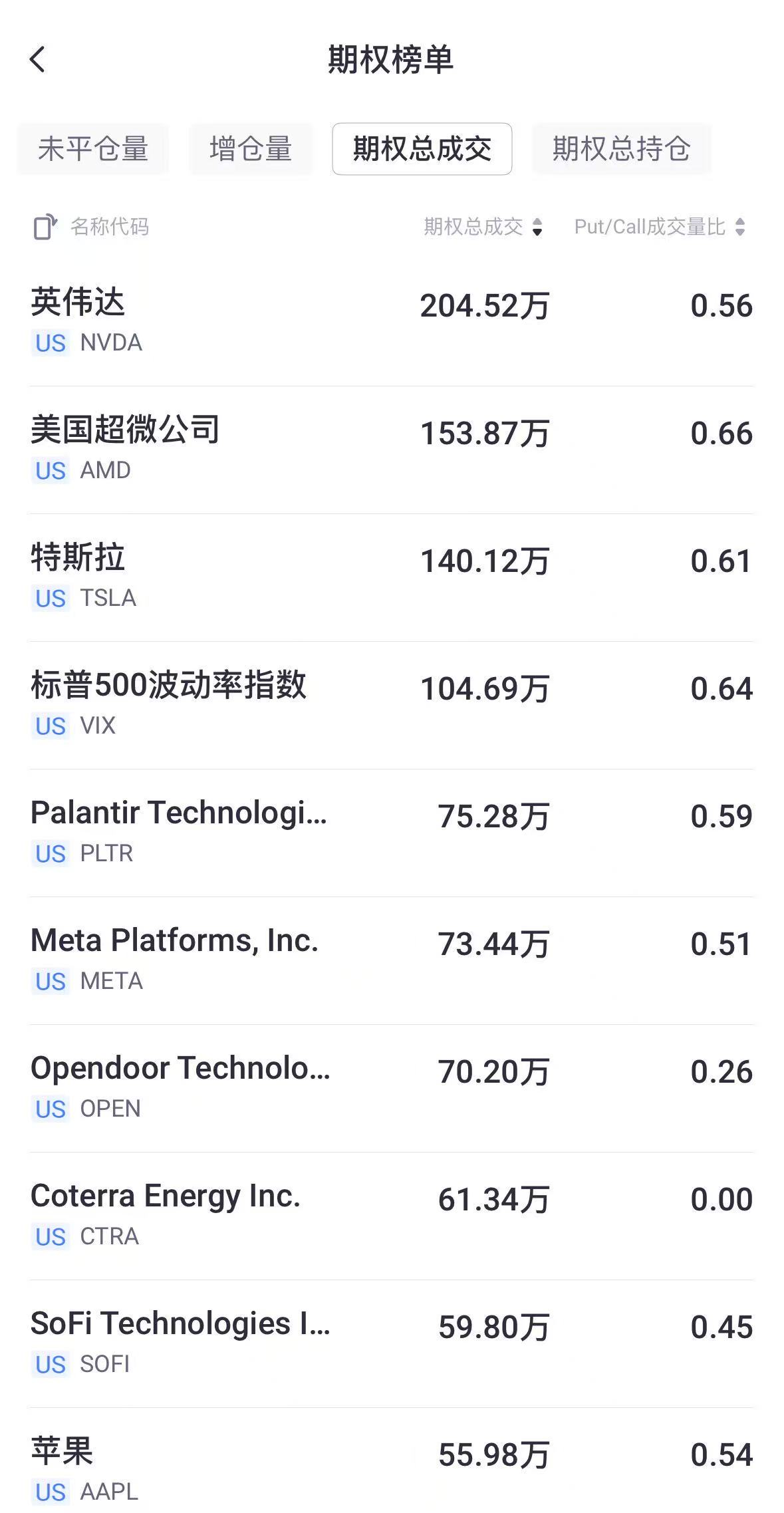 二、期权成交总量TOP10
