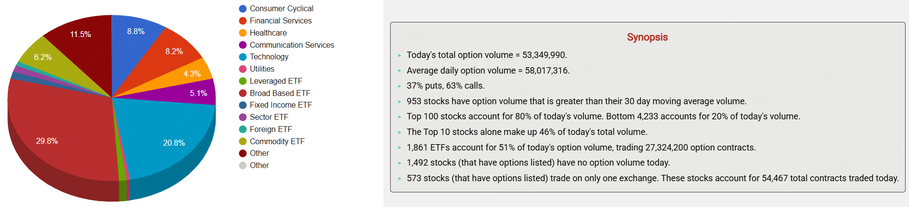 期权市场总成交量53,349,990张合约,其中看涨期权占比63%。